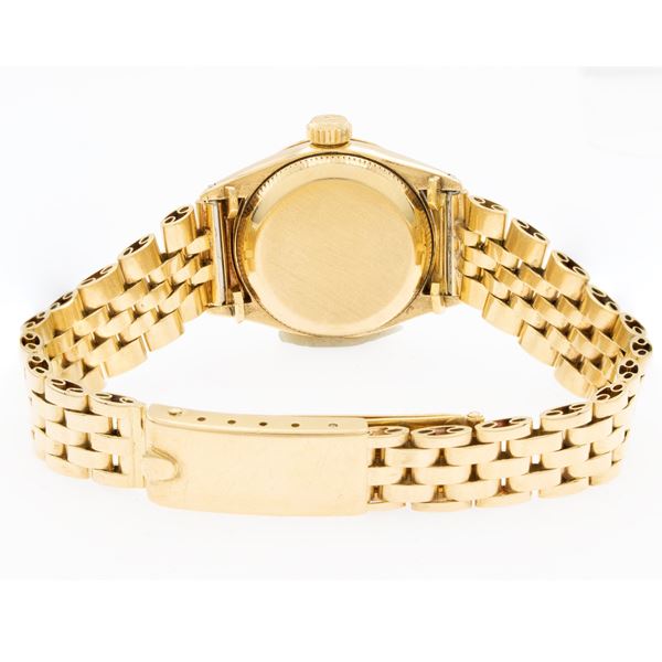 peso 55 gr.in oro giallo 18kt, ref. 6516 cassa tonda 26 mm. quadrante champagne con indici, datario ore 3, movimento meccanico a carica automatica, calibro 1130, bracciale jubileé con chiusura deployante in oro giallo, cassa quadrante e movimento firmati