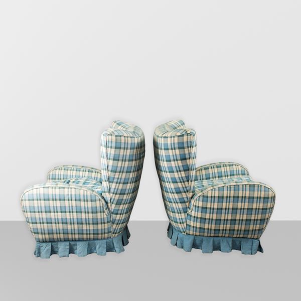 coppia di poltrone in legno e tessuto imbottito