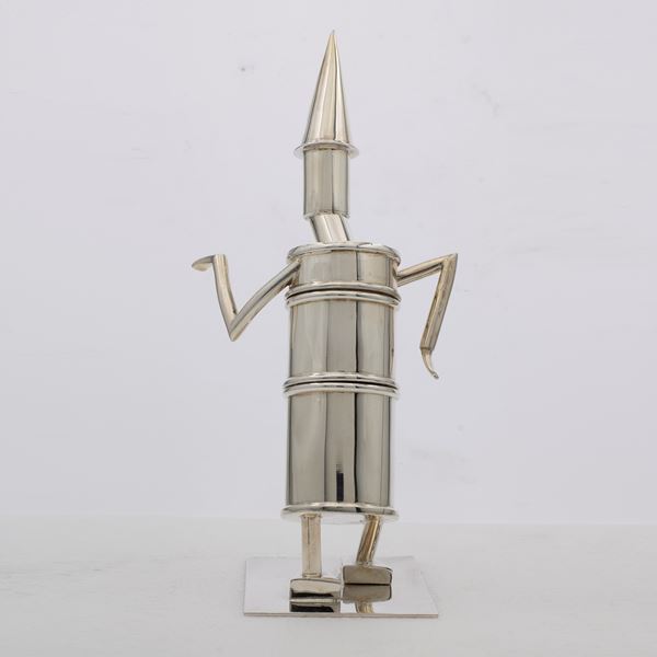 h. 22 cm.orafo Adolfo Franchi, Roma, caffettiera scultura in argento 925, firmata, peso 402 gr.