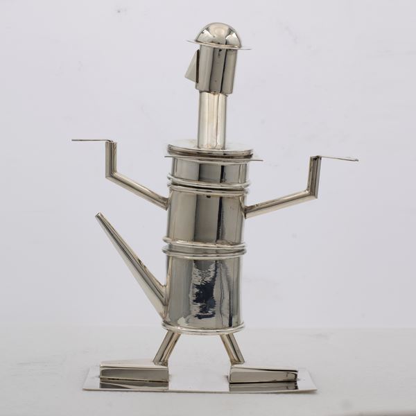 h. 19 cm.orafo Adolfo Franchi, Roma, caffettiera scultura in argento 925, firmata, peso 388 gr.