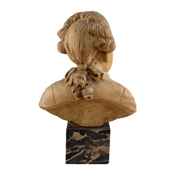 44x12x12 cm.busto in terracotta di giovane gentiluomo, poggiante su base squadrata in marmo