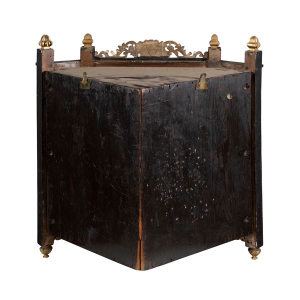 Angoliera in legno ebanizzato, dorato ed intagliato
