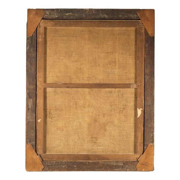 118x90 cm."Madonna con Bambino e San Giuseppe", olio su tela, entro cornice