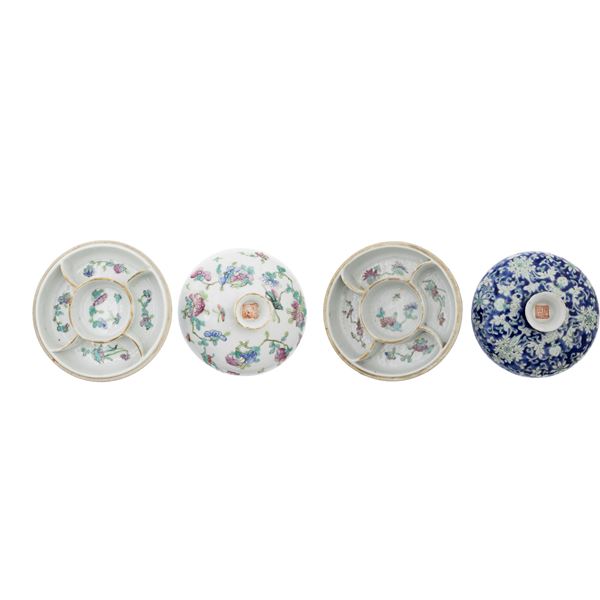 in porcellana policroma smaltata e decorata a motivi vegetali, marchio a sigillo, lievi difetti
