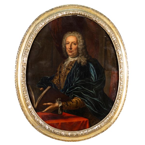 116x94 cm."Ritratto di gentiluomo", olio su tela ovale, entro cornice