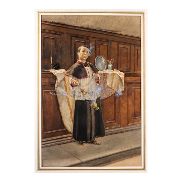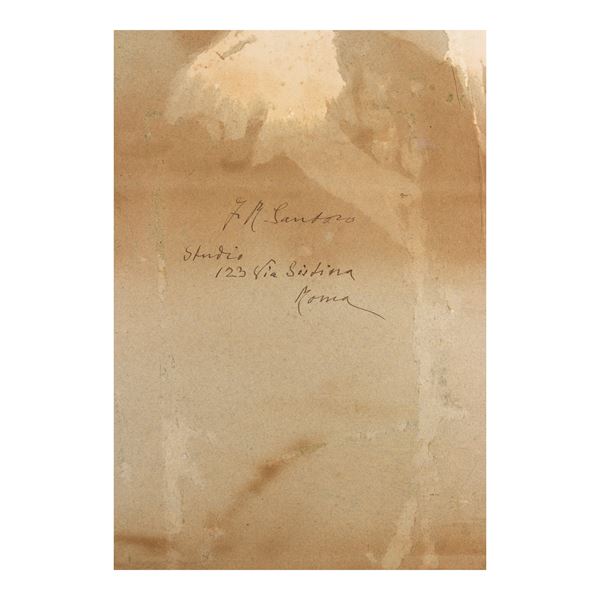 72x47 cm."La sigaretta", acquerello su carta, firmato in basso a destra, entro cornice