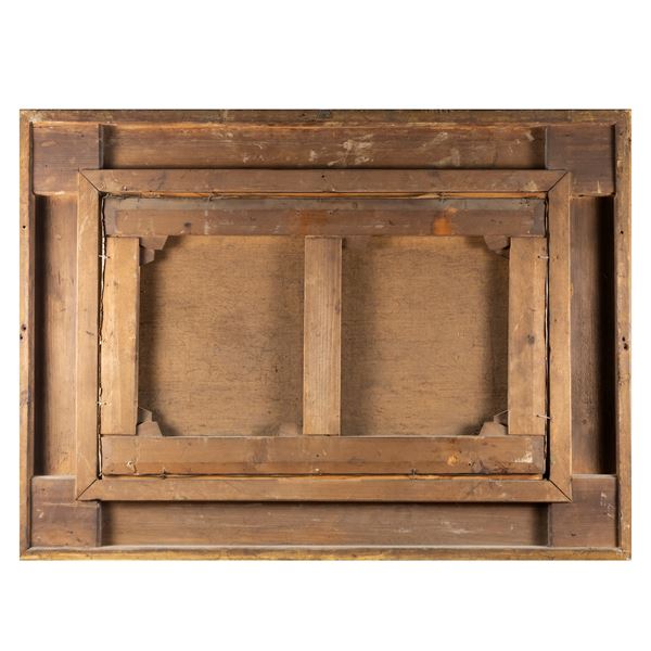 47x73 cm."Navi mercantili e piroscafo in manovra con bandiera francese", olio su tela, firmato in basso a sinistra, entro cornice