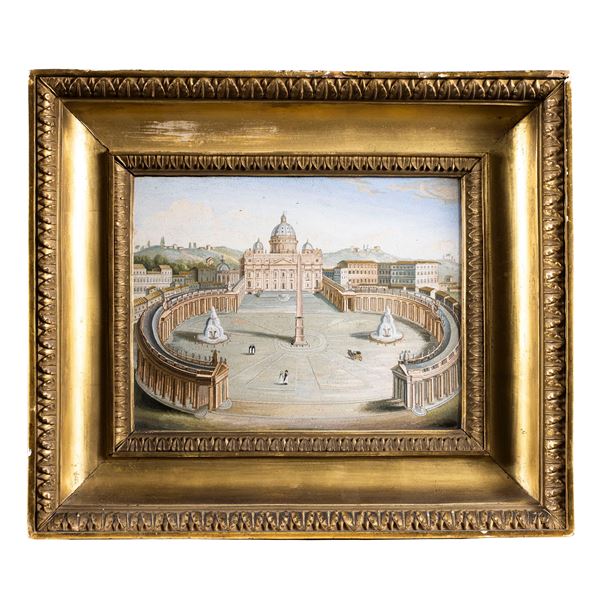 17,5x22 cm. - cornice 31x36 cm.raffigurante Piazza San Pietro, entro cornice