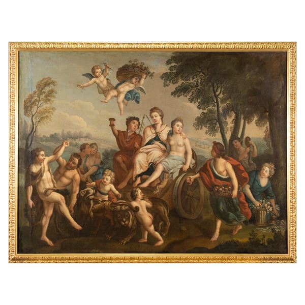 94x126 cm."Bacco e Arianna", olio su tela, entro cornice