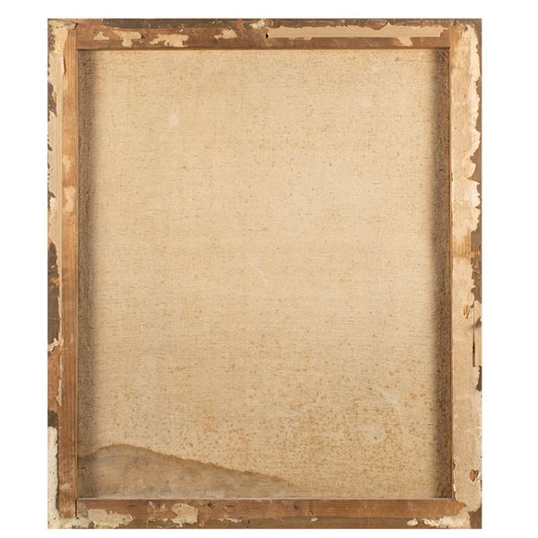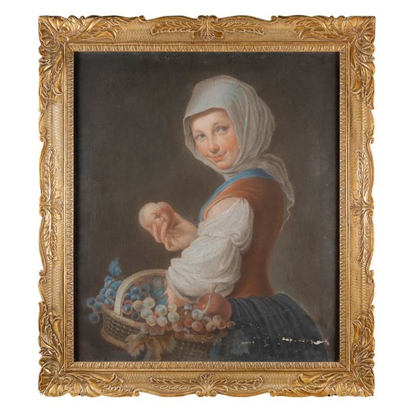 73x61 cm."Venditrice di frutta", pastello su tela, entro cornice