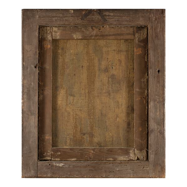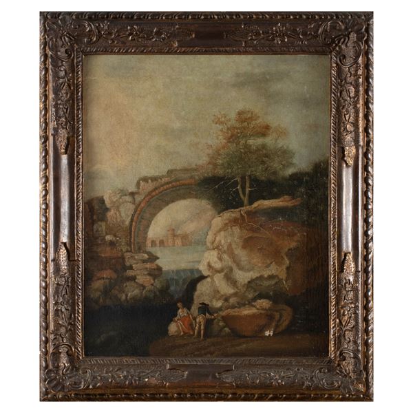 48x39 cm."Paesaggio con figure", olio su tela, entro cornice