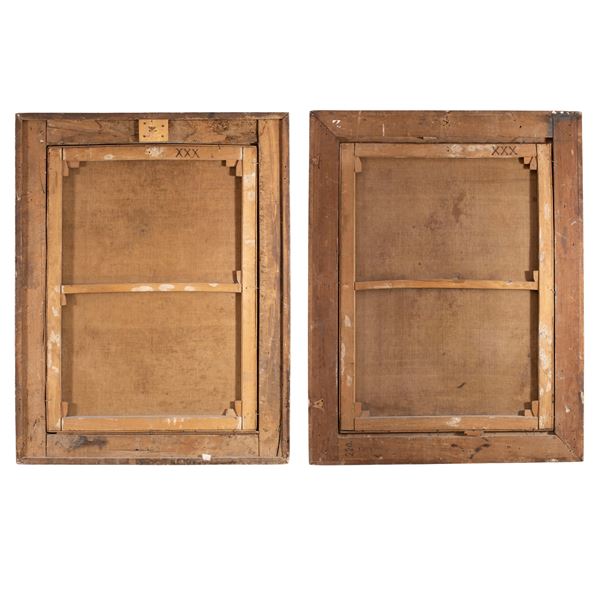 140x100 cm."Ritratti di Giulio e Marcello Sacchetti", coppia di oli su tela, entro cornici coeve