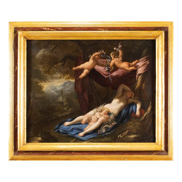 63x75 cm."Venere e Amore", olio su tela, entro cornice