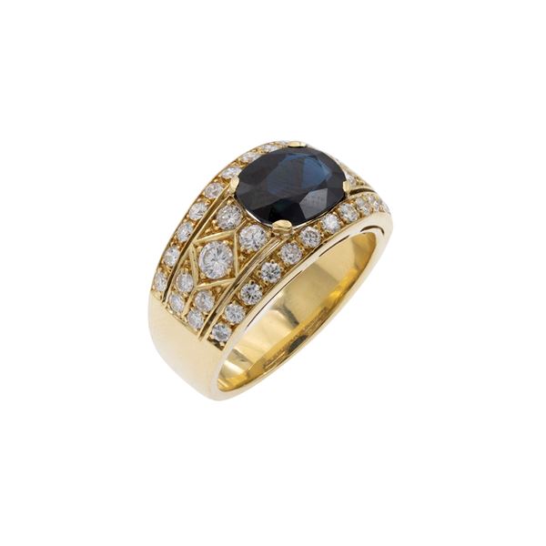 peso 9 gr.zaffiro ovale ct 2 circa e diamanti taglio brillante ct 1,20 circa, misura 16