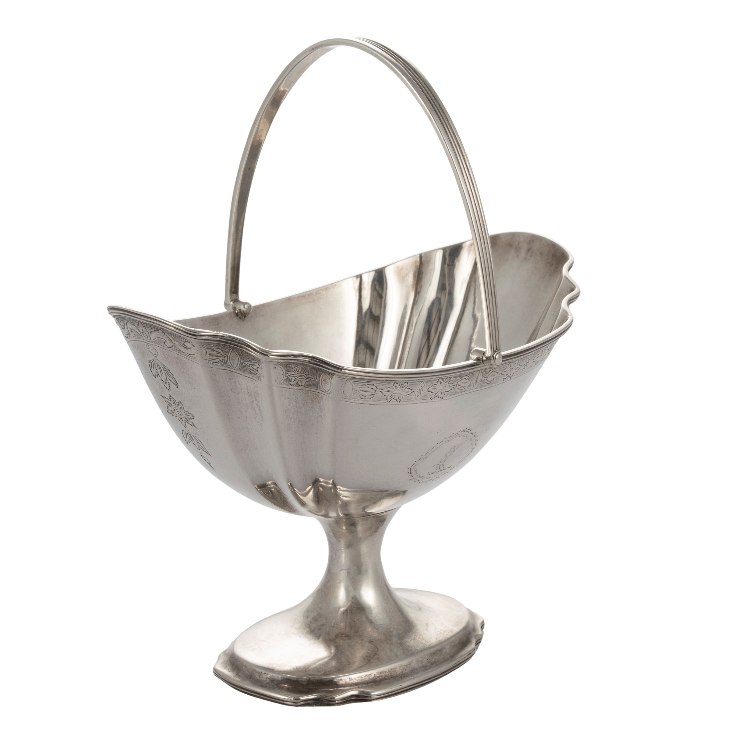 20x17,5x11 cm.poggiante su base ovale con bordo sagomato, al centro monogramma entro cartiglio, peso 300 gr
