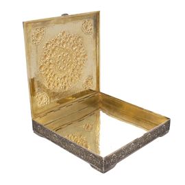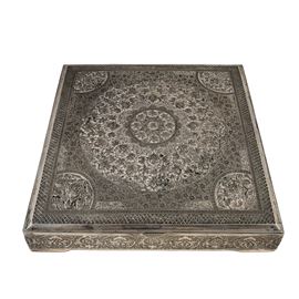 22,5x22,5x4 cm.sezione squadrata, superficie interamente decorata a motivi naturalistici, peso 1161 gr