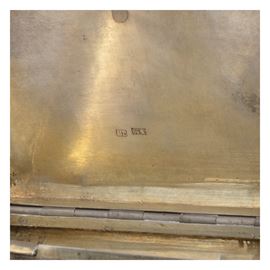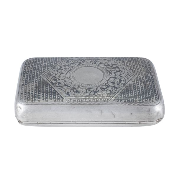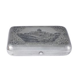 2,5x12x7,5 cm.di forma rettangolare, sul coperchio incisione architettonica, lievi difetti, peso 163 gr