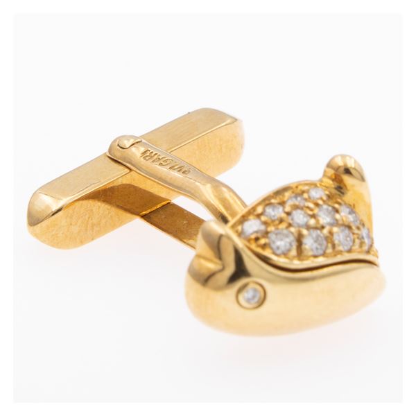 peso 12 gr.in oro giallo 18kt e diamanti taglio brillante ct 0,40 circa, dimensioni 1,4x1 cm. completi di scatola