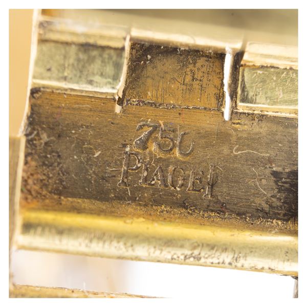 peso 51 gr.in oro giallo e bianco 18kt, ref. 925E47 - 9973, cassa tonda 24 mm. con diamanti taglio brillante, quadrante argentato con indici, vetro zaffiro, movimento Piaget meccanico a carica manuale, bracciale in oro a due colori con chiusura a cofanetto, lunghezza 17,5 cm. cassa, quadrante e movimento firmati