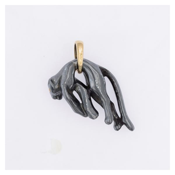 peso 27 gr.in oro giallo 18kt e argento brunito, restauri, dimensioni 4,8x2,8 cm.