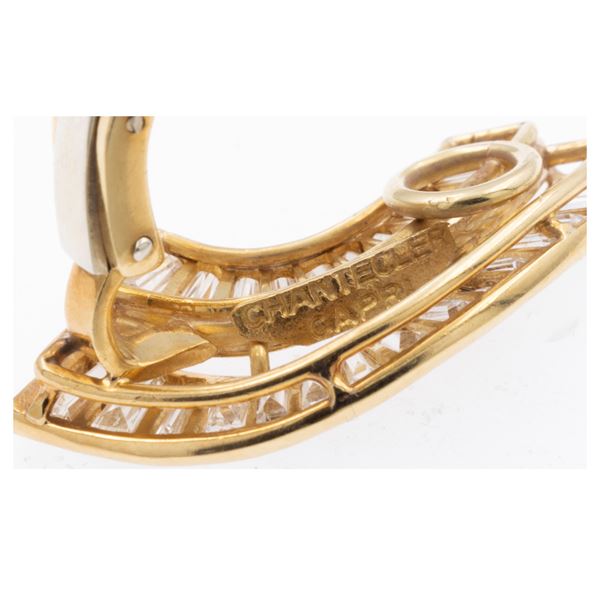 peso 10 gr.in oro giallo 18kt e diamanti taglio tapper ct 5,50 circa, lunghezza 2,7 cm.