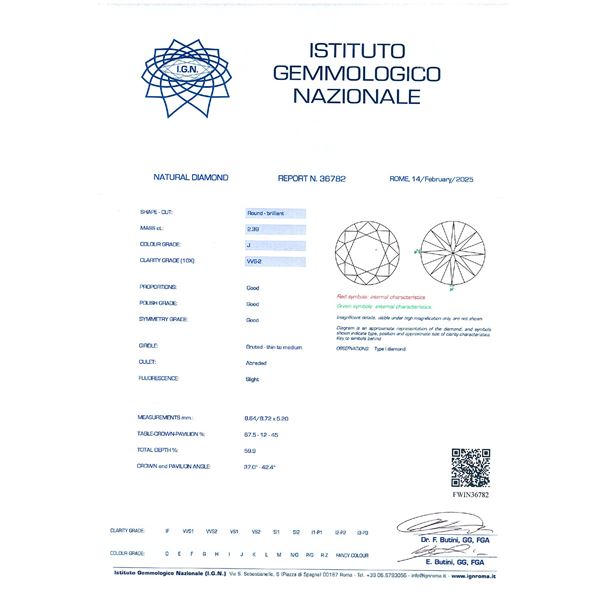 Diamante naturale sciolto taglio brillante ct 2,39