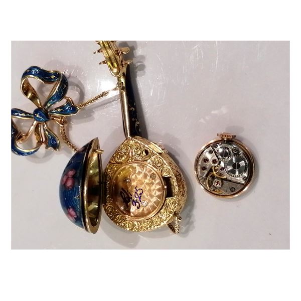 Spilla fiocco con orologio pendente a foggia di mandolino