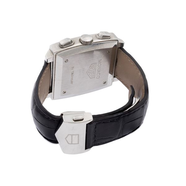 in acciaio, ref. CS 21111, cassa quadrata 38 mm. quadrante nero con indici, tre quadranti ausiliari per il cronografo, datario ore 6, movimento meccanico a carica automatica, calibro eta 2892-2 con piastra crono lemania, cinturino originale in pelle con chiusura deployante in acciaio, completo di garanzia e cinturino supplementare con fibbia in acciaio, cassa, quadrante e movimento firmati