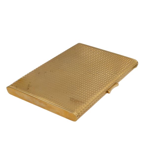lavorato a tessuto, chiusura a scatto, dimensioni 12,3x8,5 cm.