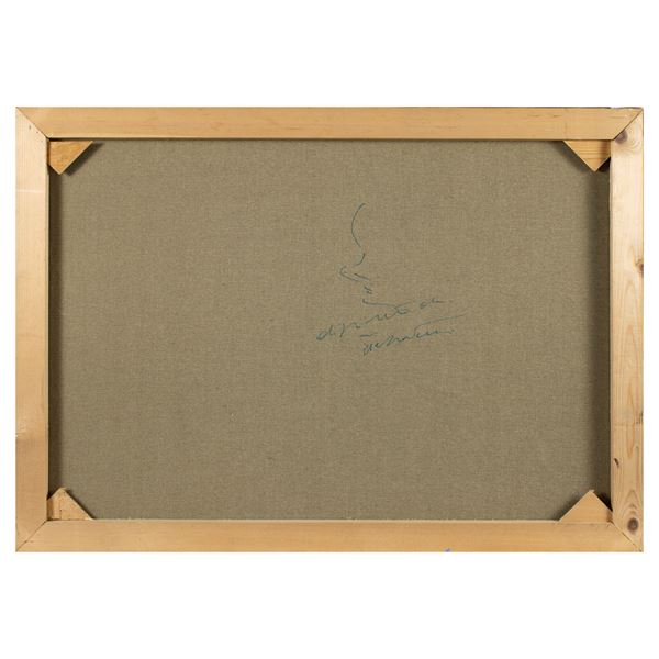 50x70 cm."Scorcio di paese", olio su tela, firmato in basso a sinistra, firmato sul retro, entro cornice