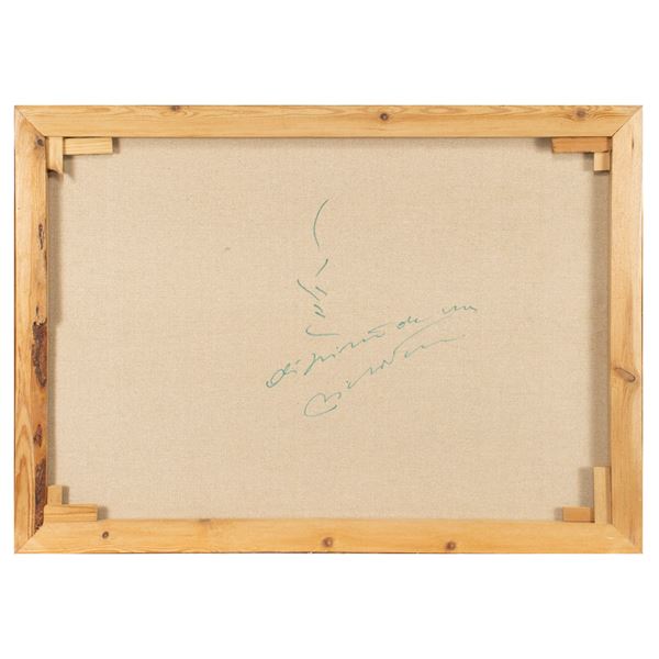 "Casali in campagna", olio su tela, firmato in basso a sinistra, firmato sul retro