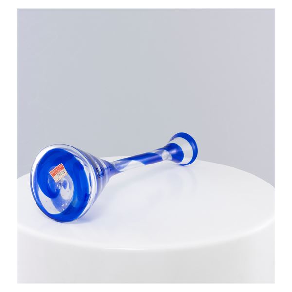 h. 31 cm.vaso in vetro trasparente e colorato, etichetta della produzione
