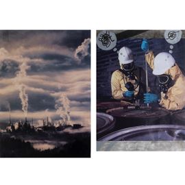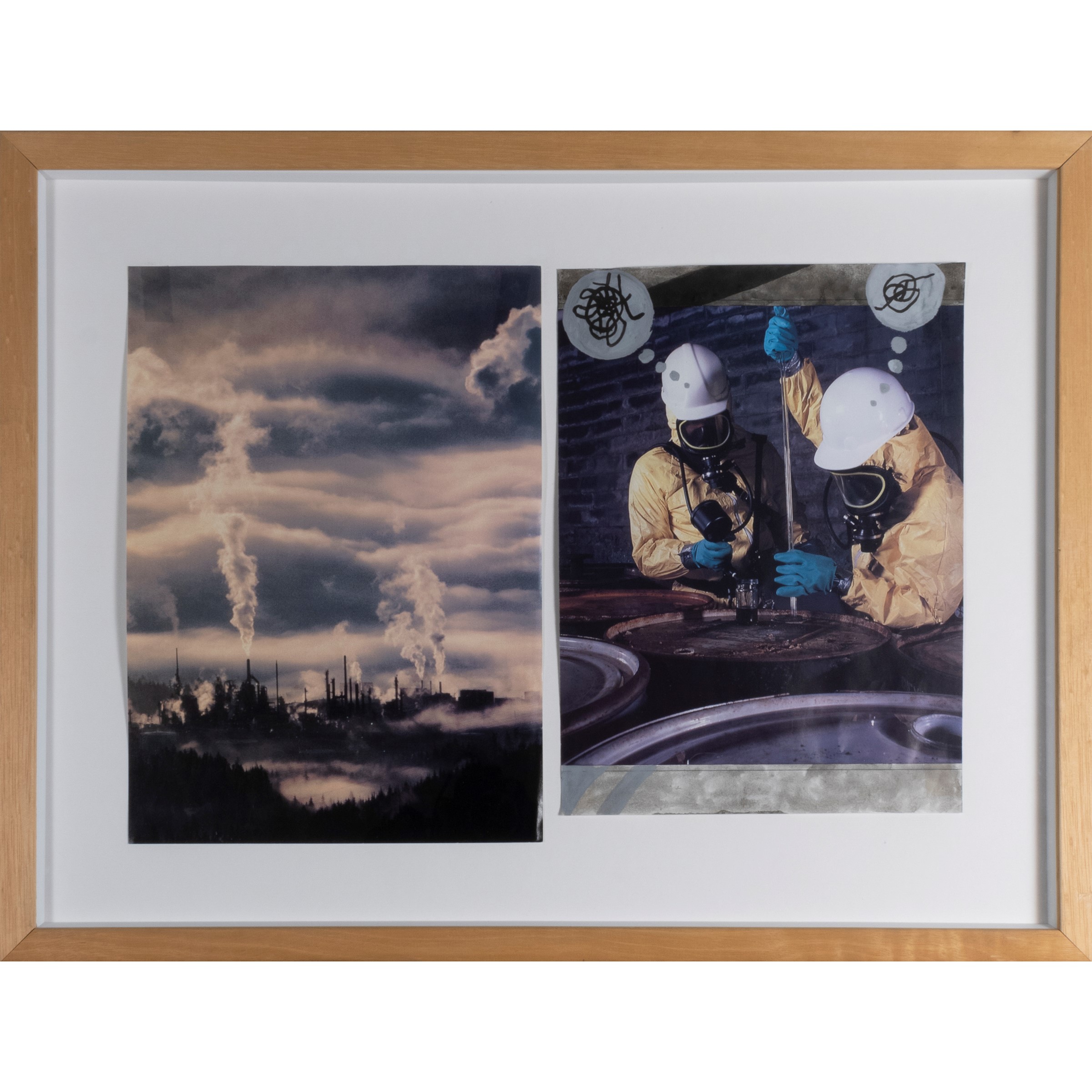 29,5x42,5 cm.collage di due pagine di giornale ritoccate a mano, entro cornice