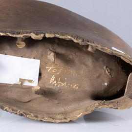 scultura in bronzo dorato e smaltato, firmato e datato sotto la base