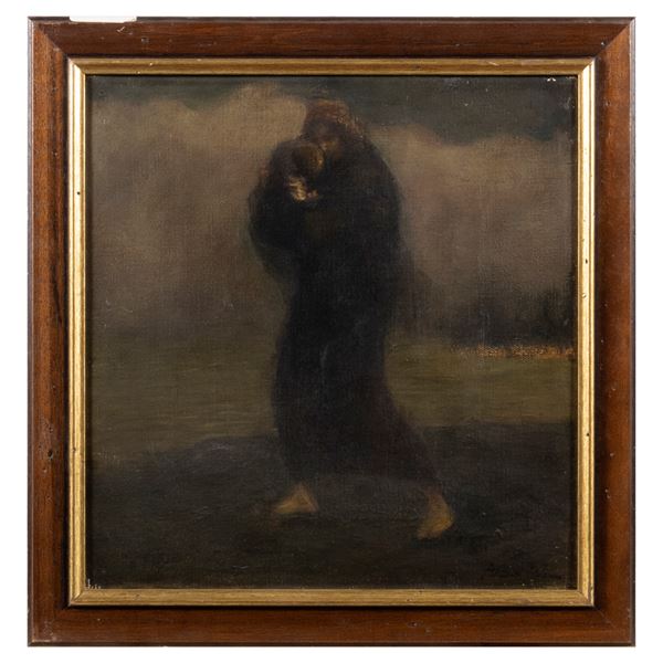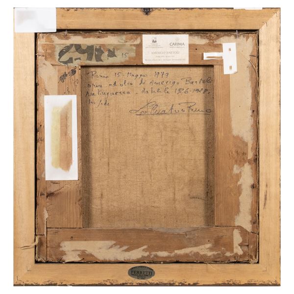 35x34 cm.olio su tela, firmato in basso a destra, iscrizione al retro, entro cornice