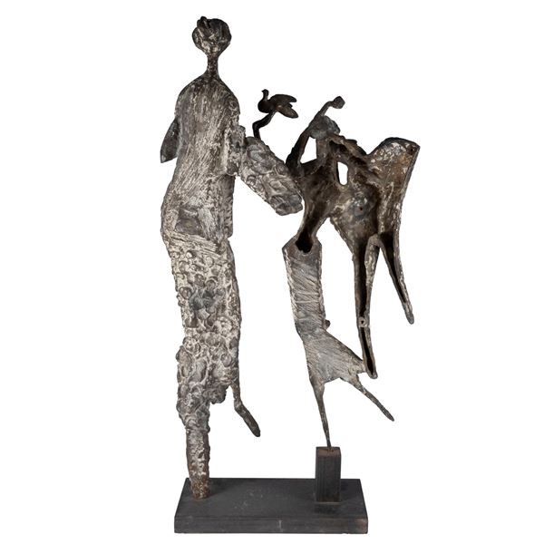 76x42x18 cm.scultura in bronzo patinato, base in ferro