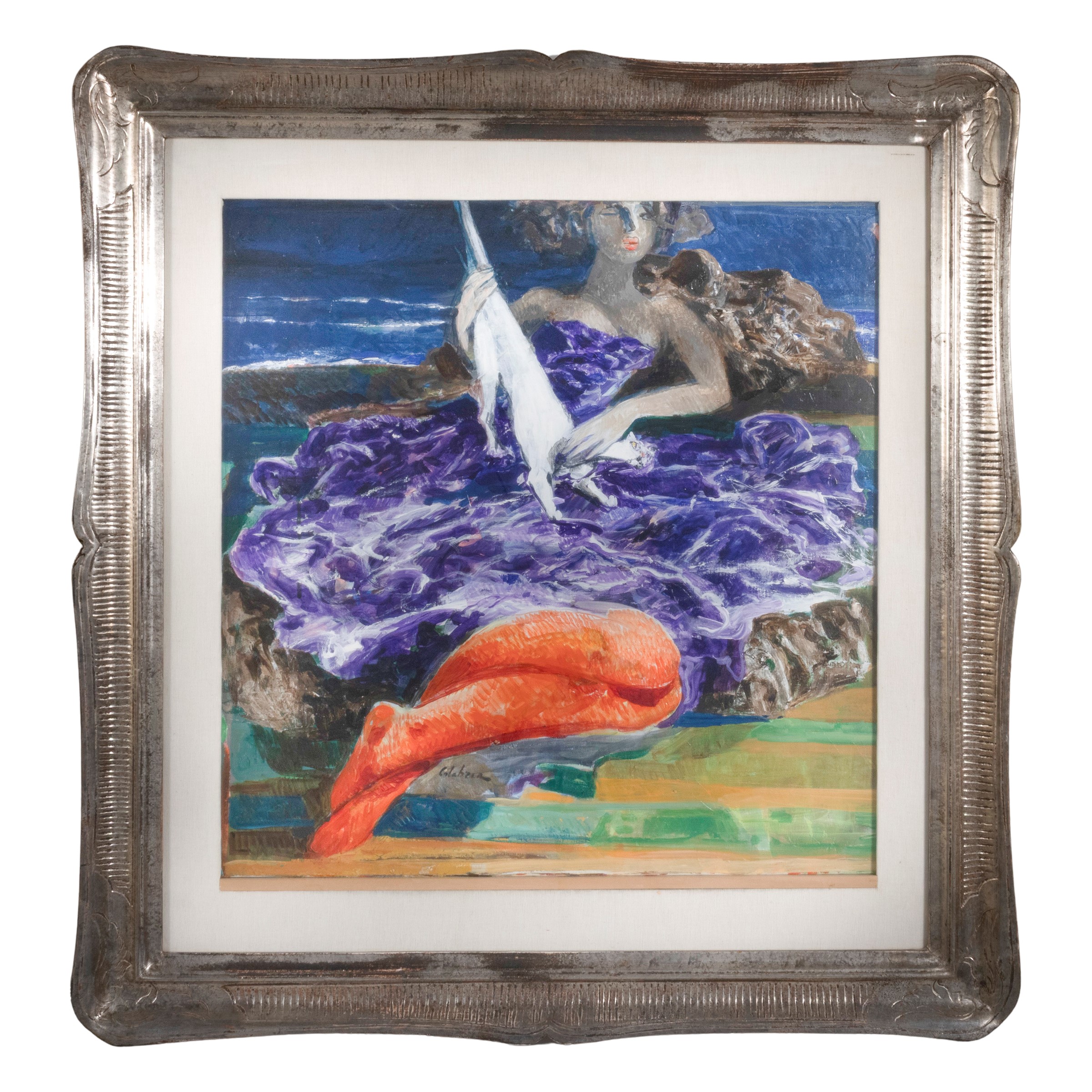 60x60 cm.olio su tela, firmato in basso al centro, firmato e titolato sul retro, firmato per autentica sul retro, entro cornice