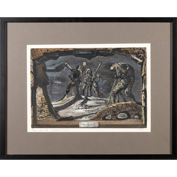 24x34,5 cm.china e acquerello su carta, siglato e datato in basso al centro, entro cornice