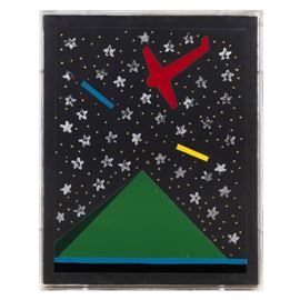 50x40 cm.tecnica mista su tela, firmato e titolato sul retro, entro cornice in plexiglass