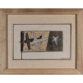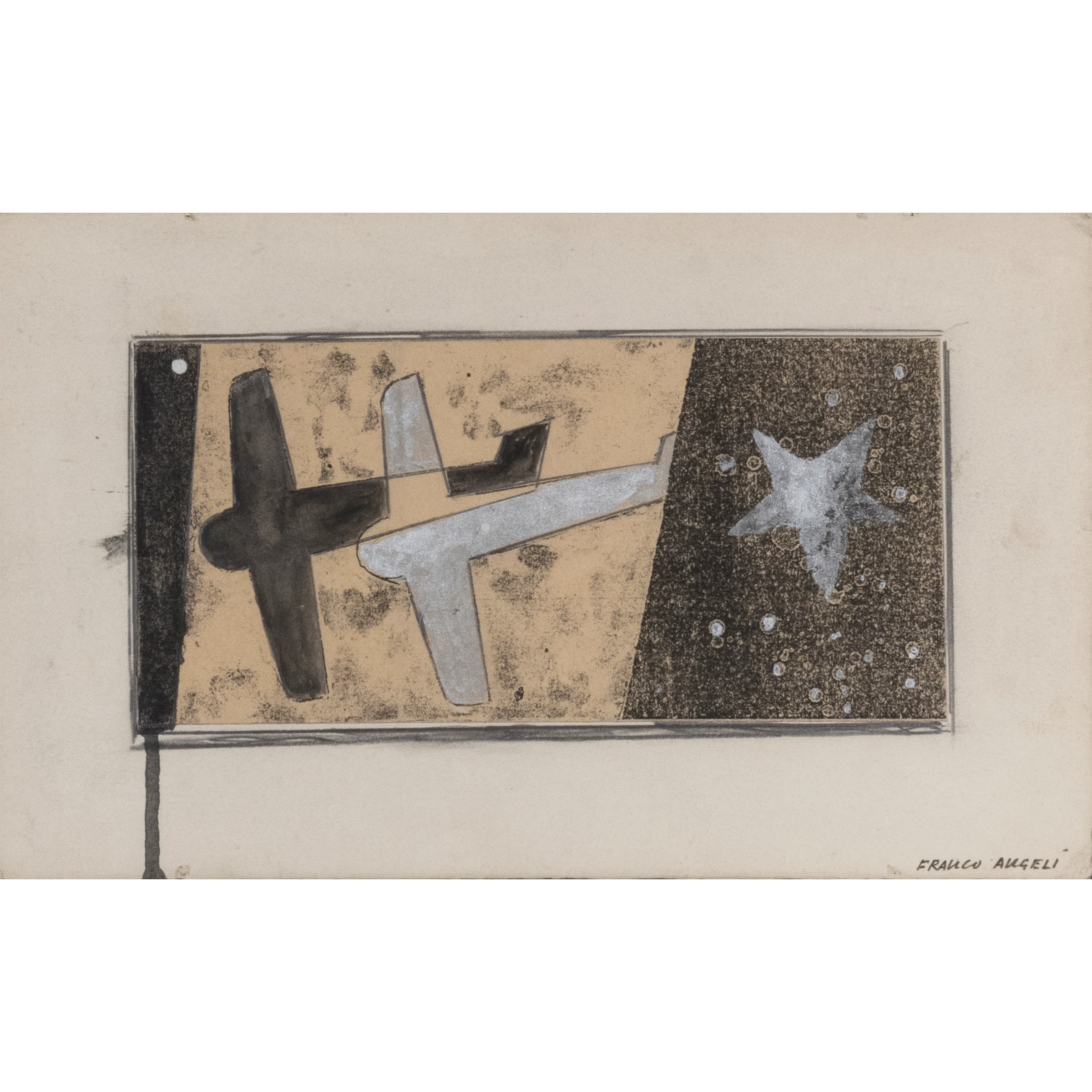 17,5x28 cm.tecnica mista su carta, firmato in basso a destra, entro cornice