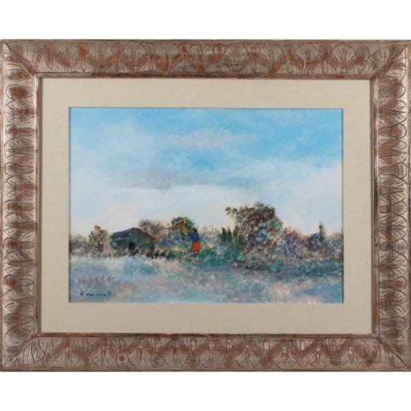 35x50 cm.olio su cartoncino, firmato in basso a sinistra, firmato, datato, titolato e dedicato sul retro, entro cornice