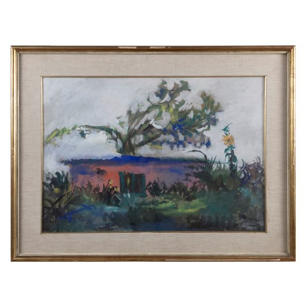 42x60 cm.tecnica mista su carta intelata, firmato in basso a destra, firmato al retro, entro cornice