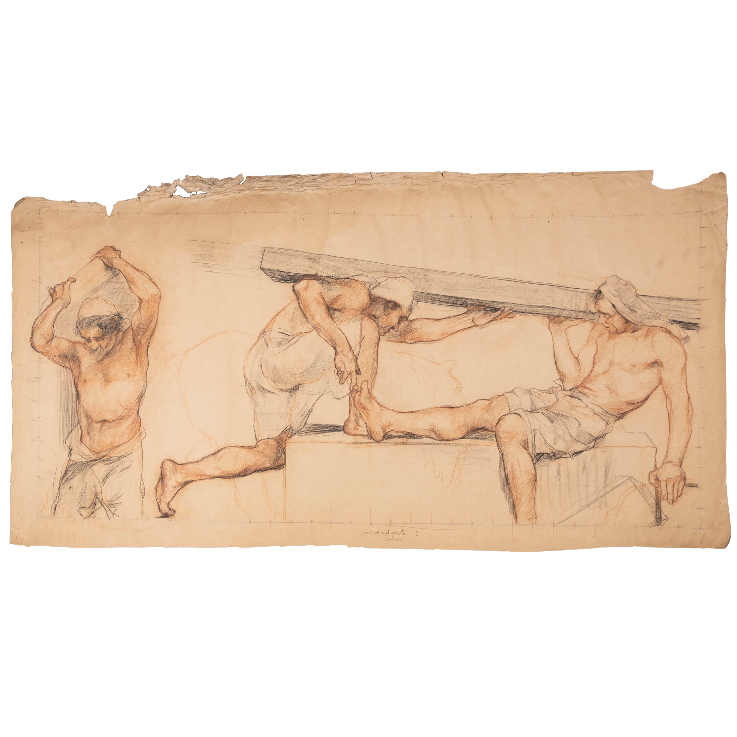 82,5x157 cm.carboncino e sanguigna su carta, titolato in basso al centro, foglio libero