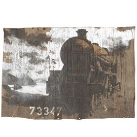 300x440 cm.olio su telone di copertura di vagone ferroviario, timbro ed etichetta Italian Factory sul retro