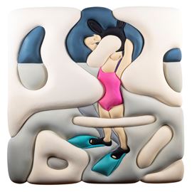 gommapiuma e lycra su tavola di legno, firmato, datato e titolato sul retro