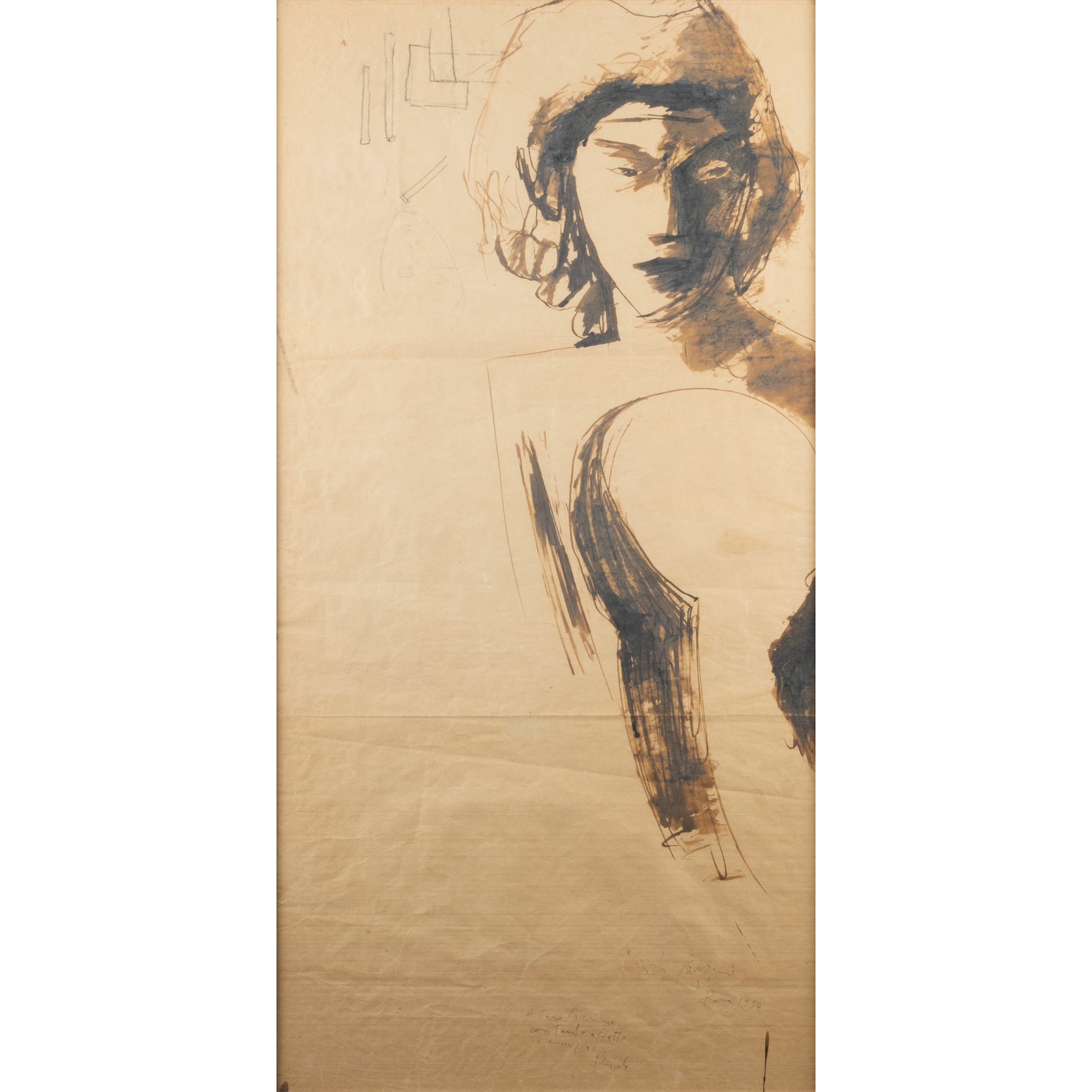 94x48,5 cminchiostro e matita su carta da spolvero, firmato e datato in basso a destra, dedicato in basso al centro, entro cornice