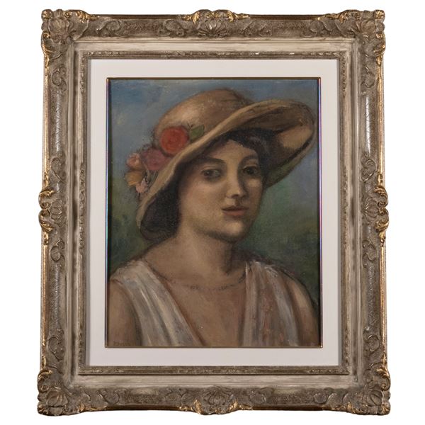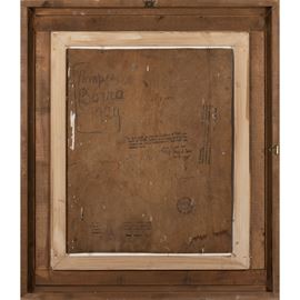 49,5x40 cm.olio su tavoletta, firmato in basso a sinistra, firmato e datato sul retro, entro cornice
