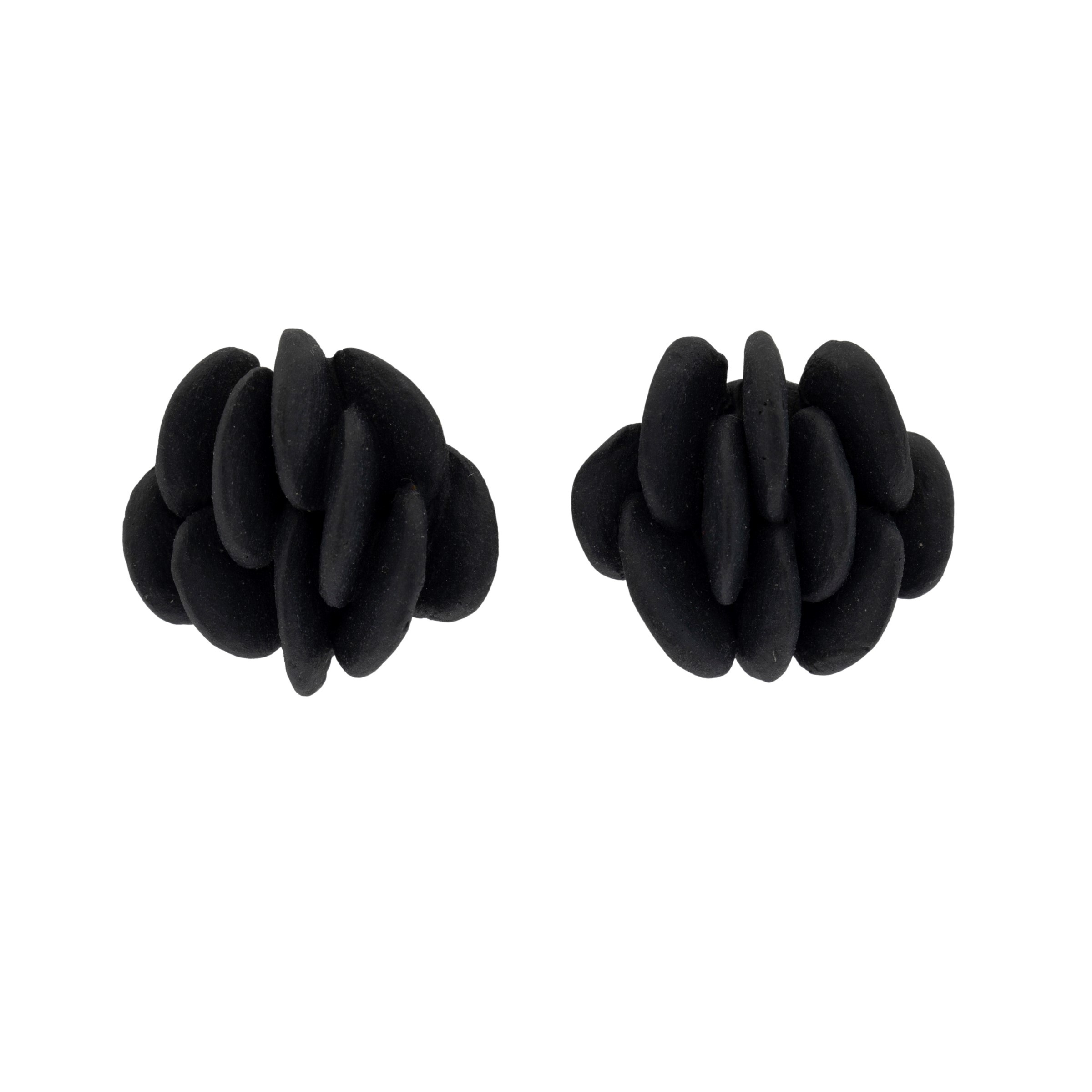 2x2 cm.orecchini a lobo in porcellana nera modellata a mano e ossidi e argento 925
