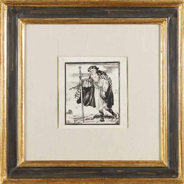 "Viandante - Illustrazione per Leonardo", 1906, china e inchiostro su carta, entro cornice