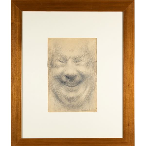 33x22 cm."Volto ridente", carboncino su carta, firmato in basso a destra, entro cornice
